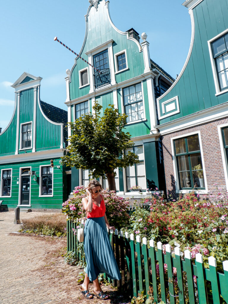 Ein beliebter Halbtagesausflug von Amsterdam ist das Dorf Zaanse Schans, wo es authentische holländische Holzhäuser, Windmühlen und vieles mehr gibt.