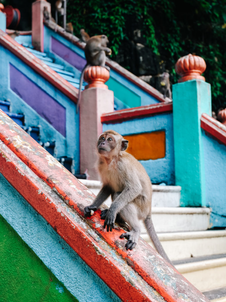 Auf den Treppen tummeln sich ganz viele kleine Affen auf der Suche nach etwas essbarem, pass am besten ein wenig auf, dass sie dir nichts wegnehmen oder an deinen Rucksack gehen.