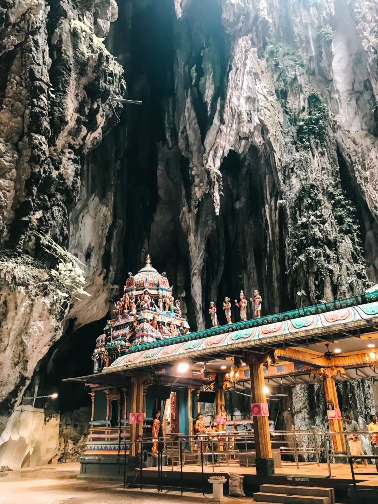 Wenn du oben angekommen bist, stehst du direkt am Eingang zu dem Höhlentempel, den sogenannten light caves. Die Höhle ist weitläufig und du wirst überall mal größere, mal kleinere bunte Statuen und Schreine sehen. Der Eintritt ist gratis, wenn du jedoch noch die dark caves besichtigen möchtest, musst du für eine geführte Tour bezahlen.