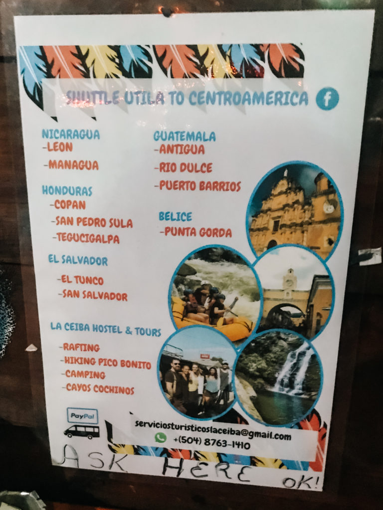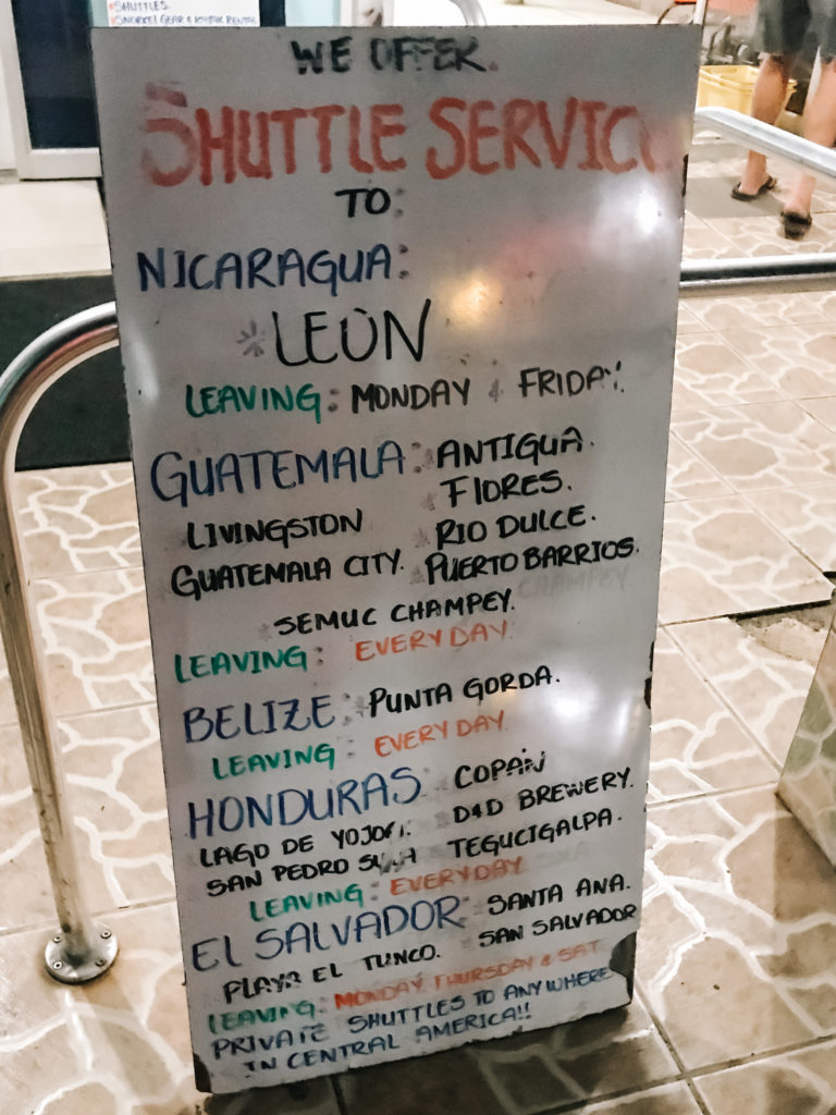 Die Touristenshuttles sind normalerweise Minivans, in denen du je nach Entfernung den ganzen Tag verbringen kannst. Ein solches Shuttle kannst du in einer Reiseagentur vor Ort buchen, auch kann dir deine Tauchschule auf Utila dabei helfen. Je nach Gruppe und wer wo hin will, musst du das Shuttle vielleicht mal wechseln. So kann es natürlich auch passieren, dass du mehrere Stunden an einer Tankstelle oder etwas ähnlichem warten musst, weil noch auf Mitfahrer aus anderen Shuttles gewartet werden muss.